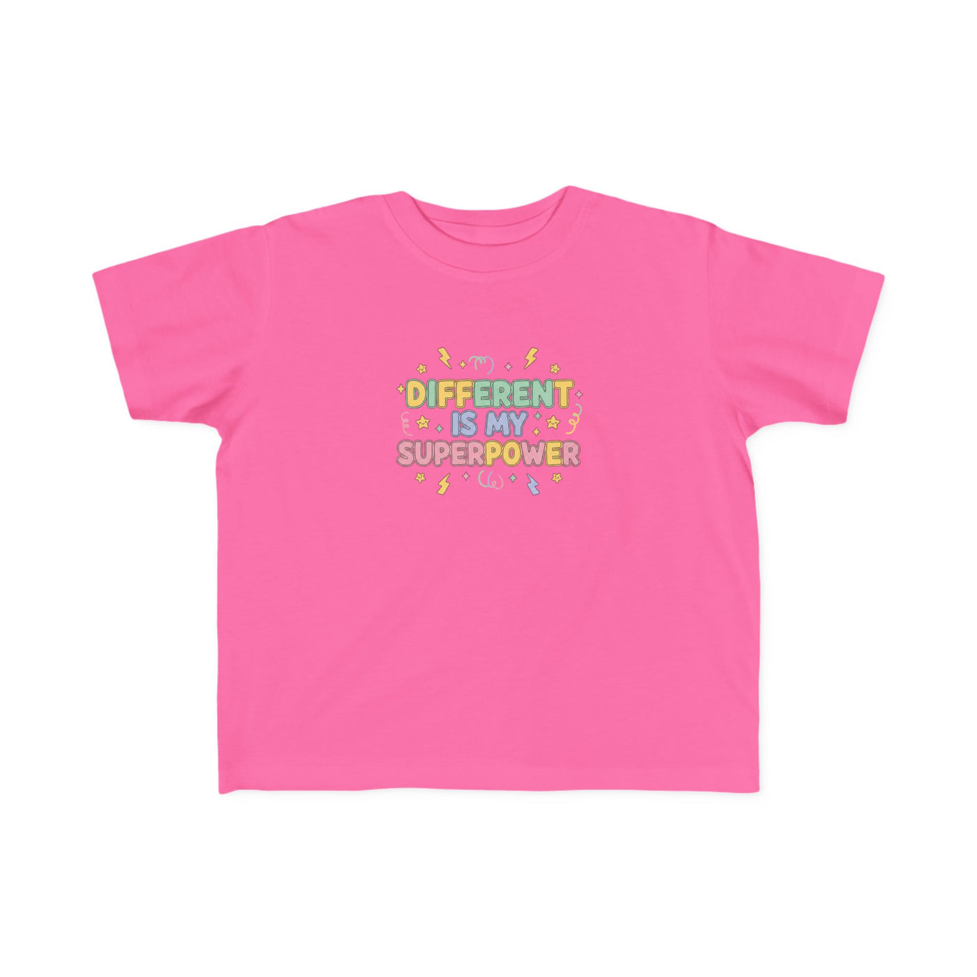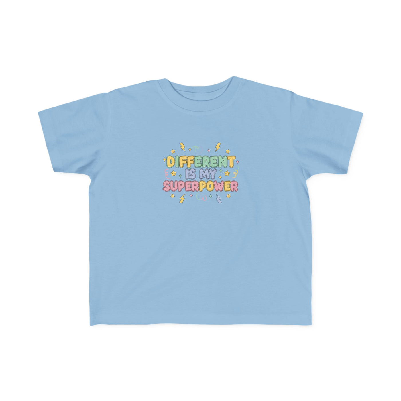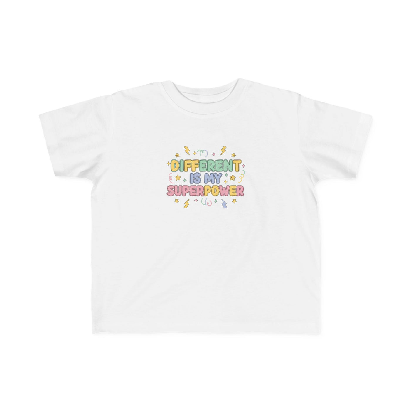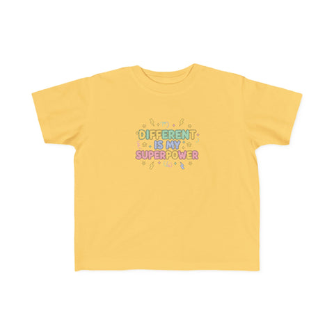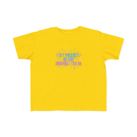 Soft, breathable, and joyfully bold—this toddler tee celebrates neurodiversity with a playful, empowering message: Different is My Superpower. Lightweight and gentle against sensitive skin, its clear, easy-to-read text and cheerful graphics invite curiosity and confidence. The thoughtful construction—side seams for shape, ribbed collar, and shoulder tape—keeps the shirt comfy and durable through rough-and-tumble days. For kids with ADHD, autism, or any little one who shines differently, this tee fits into school mornings, playground adventures, and family outings, turning everyday moments into chances to be proud and seen.