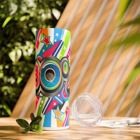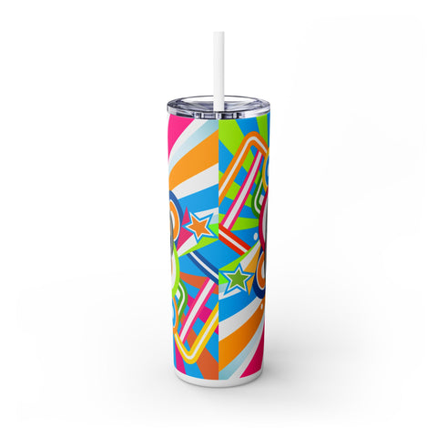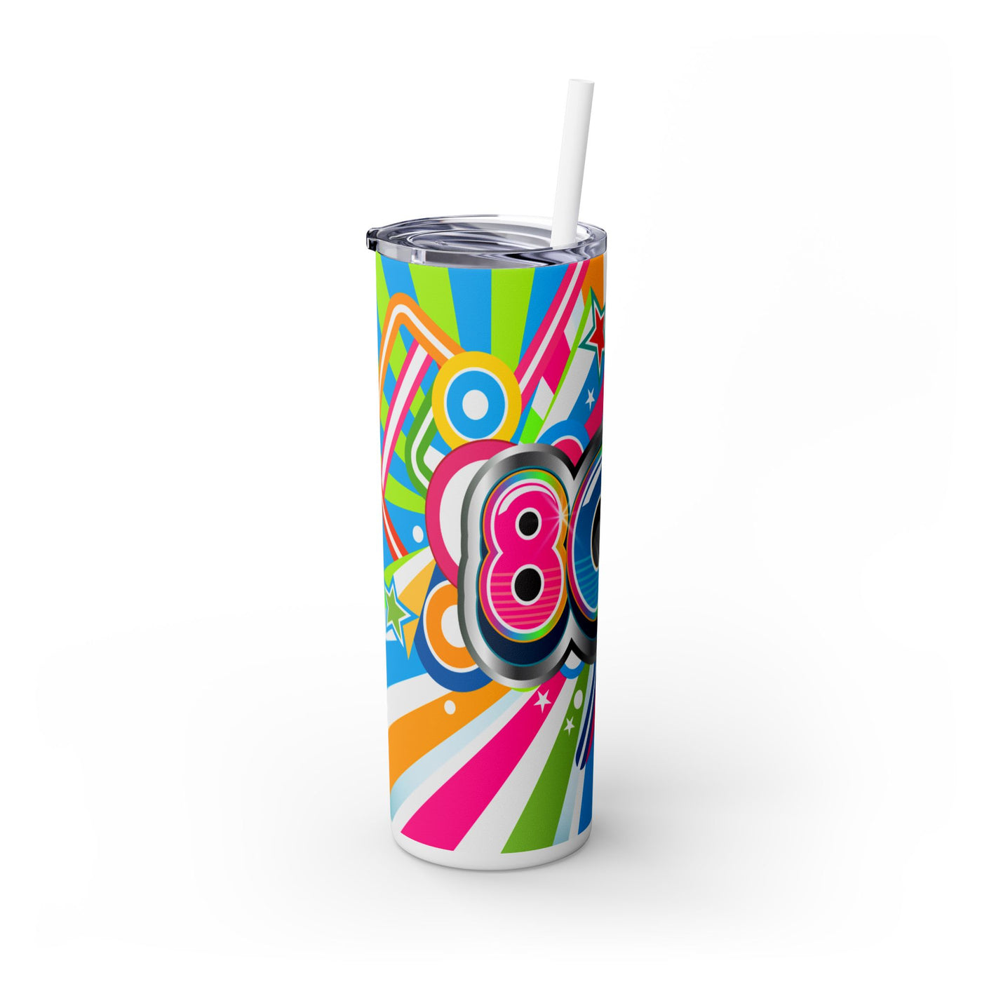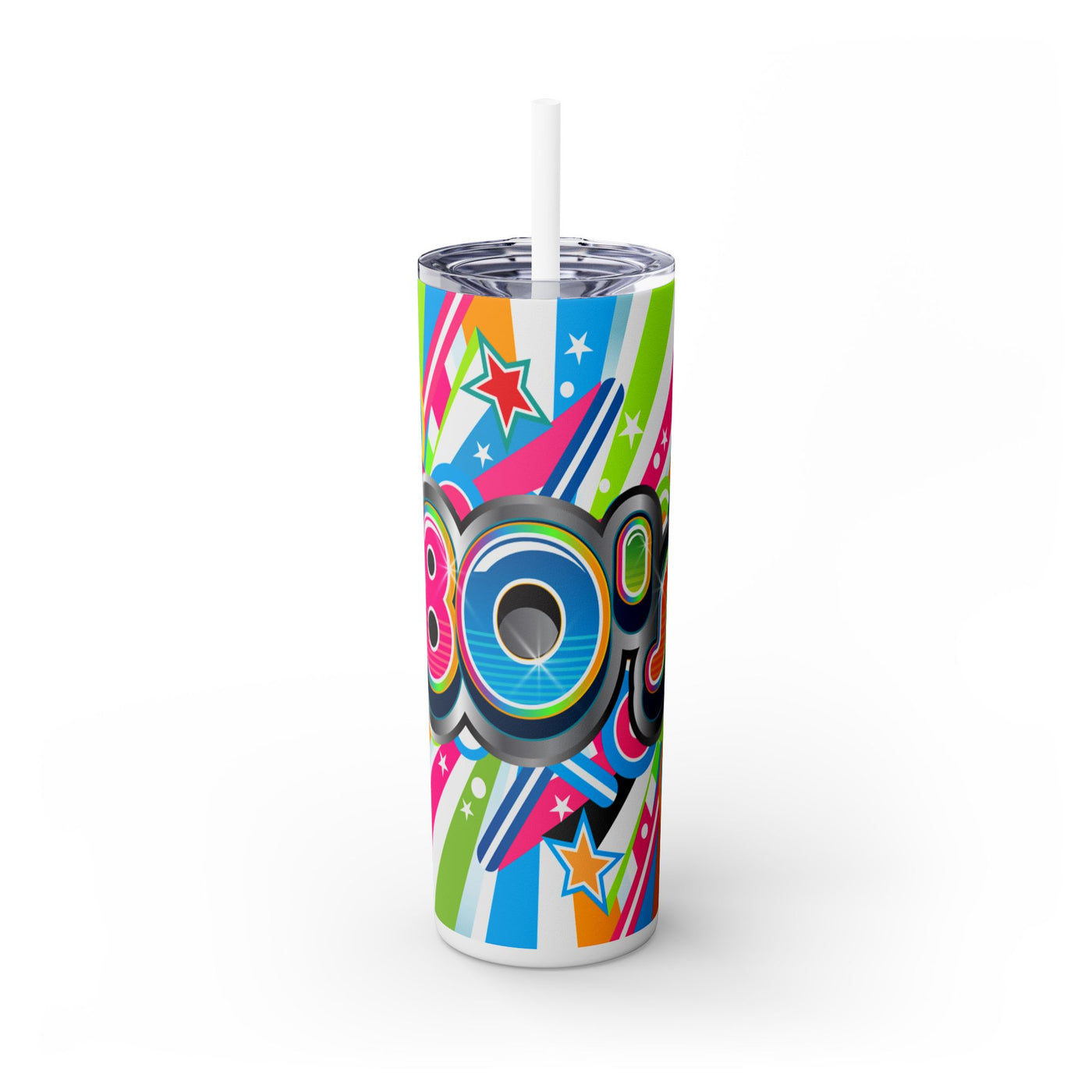 80sThe Maars personalized skinny tumblers keep your drinks hot for 12h and cold for 24h, making them the perfect sipping companion all year round. With 20oz capacity, these tumblers come in a matte or glossy finish, and feature a tapered shape with a slim design for effortless carriage. The plastic press-on lid with color-matching straw makes for great practicality on the go, while all components are BPA-free and non-toxic; aka perfect for the whole family. Each tumbler has a matte UV-print finish.