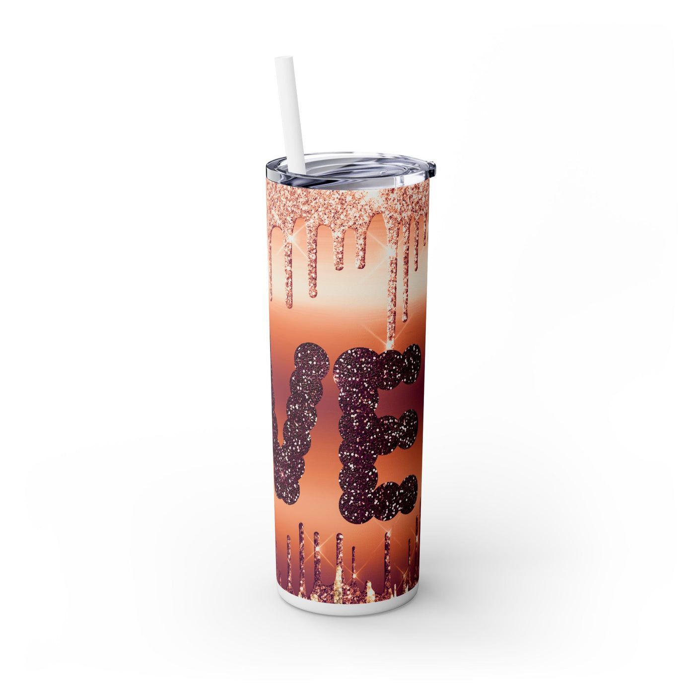 Love The Maars personalized skinny tumblers keep your drinks hot for 12h and cold for 24h, making them the perfect sipping companion all year round. With 20oz capacity, these tumblers come in a matte or glossy finish, and feature a tapered shape with a slim design for effortless carriage. The plastic press-on lid with color-matching straw makes for great practicality on the go, while all components are BPA-free and non-toxic; aka perfect for the whole family. Each tumbler has a matte UV-print finish.