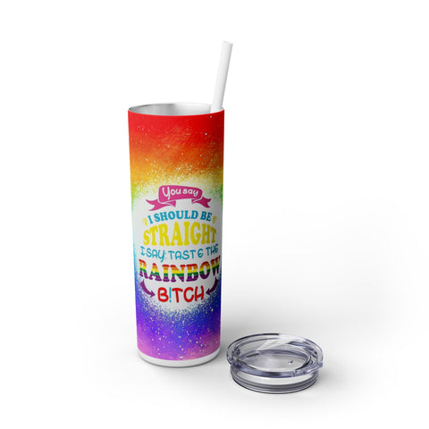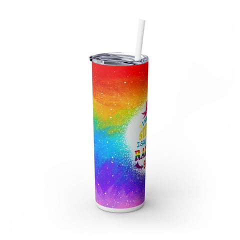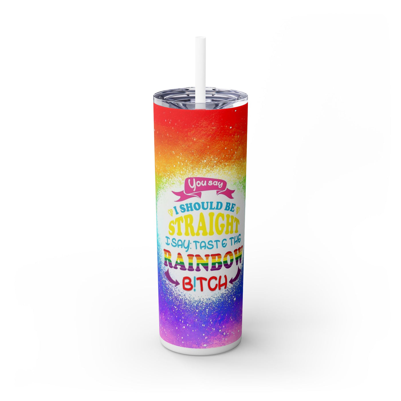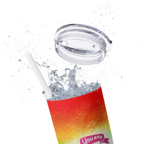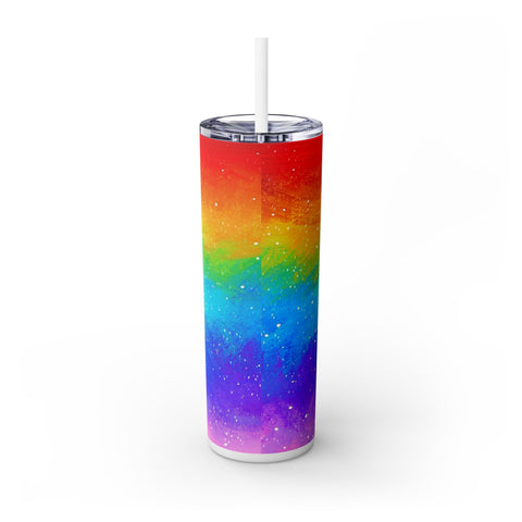 Taste the Rainbow The Maars personalized skinny tumblers keep your drinks hot for 12h and cold for 24h, making them the perfect sipping companion all year round. With 20oz capacity, these tumblers come in a matte or glossy finish, and feature a tapered shape with a slim design for effortless carriage. The plastic press-on lid with color-matching straw makes for great practicality on the go, while all components are BPA-free and non-toxic; aka perfect for the whole family. Each tumbler has a matte UV-print finish.